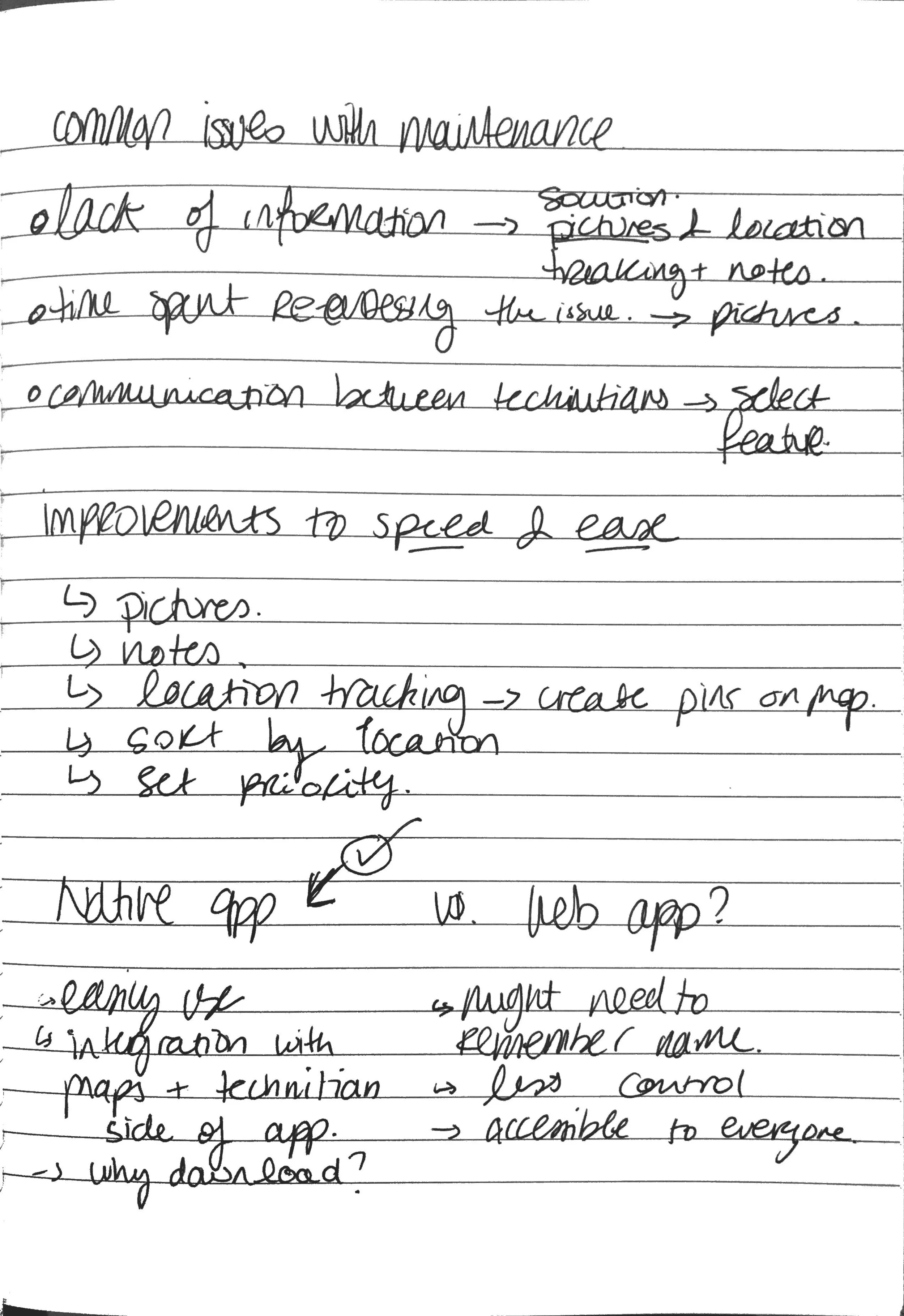 Very roughly I started doing some sketches of how one would set up the account, submit a maintenance request, and how a technician would then resolve the issue: